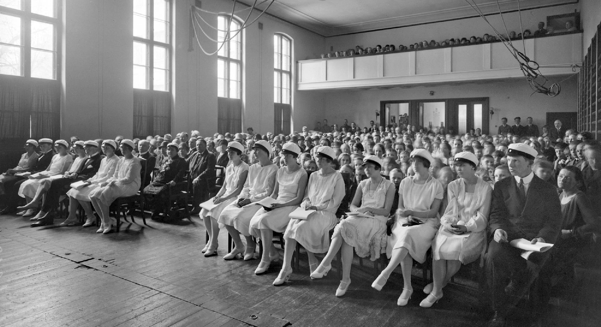 Koulun ensimmäiset ylioppilaat vuonna 1927. Kuva: Eric Sundström / Helsingin kaupunginmuseo.